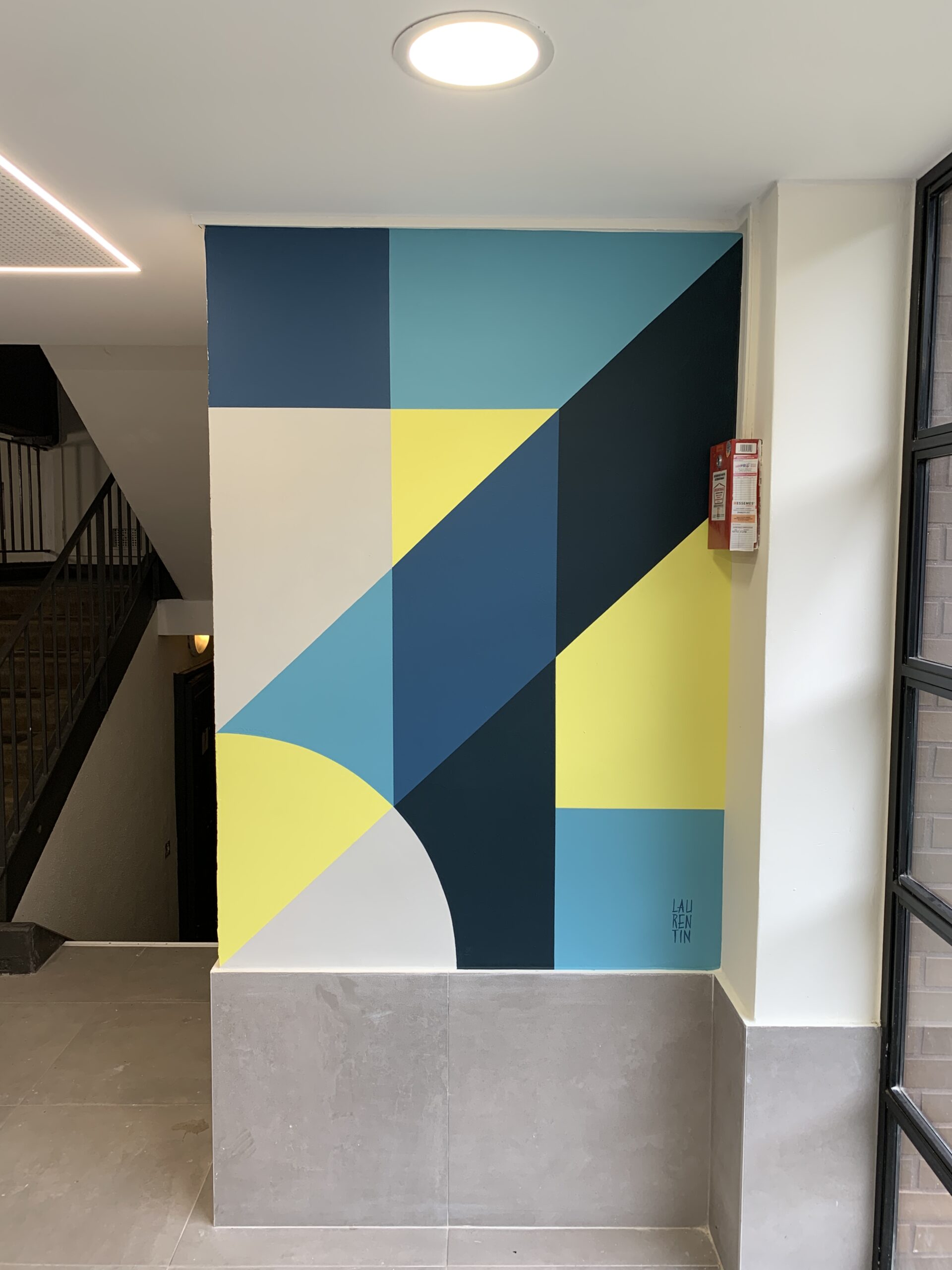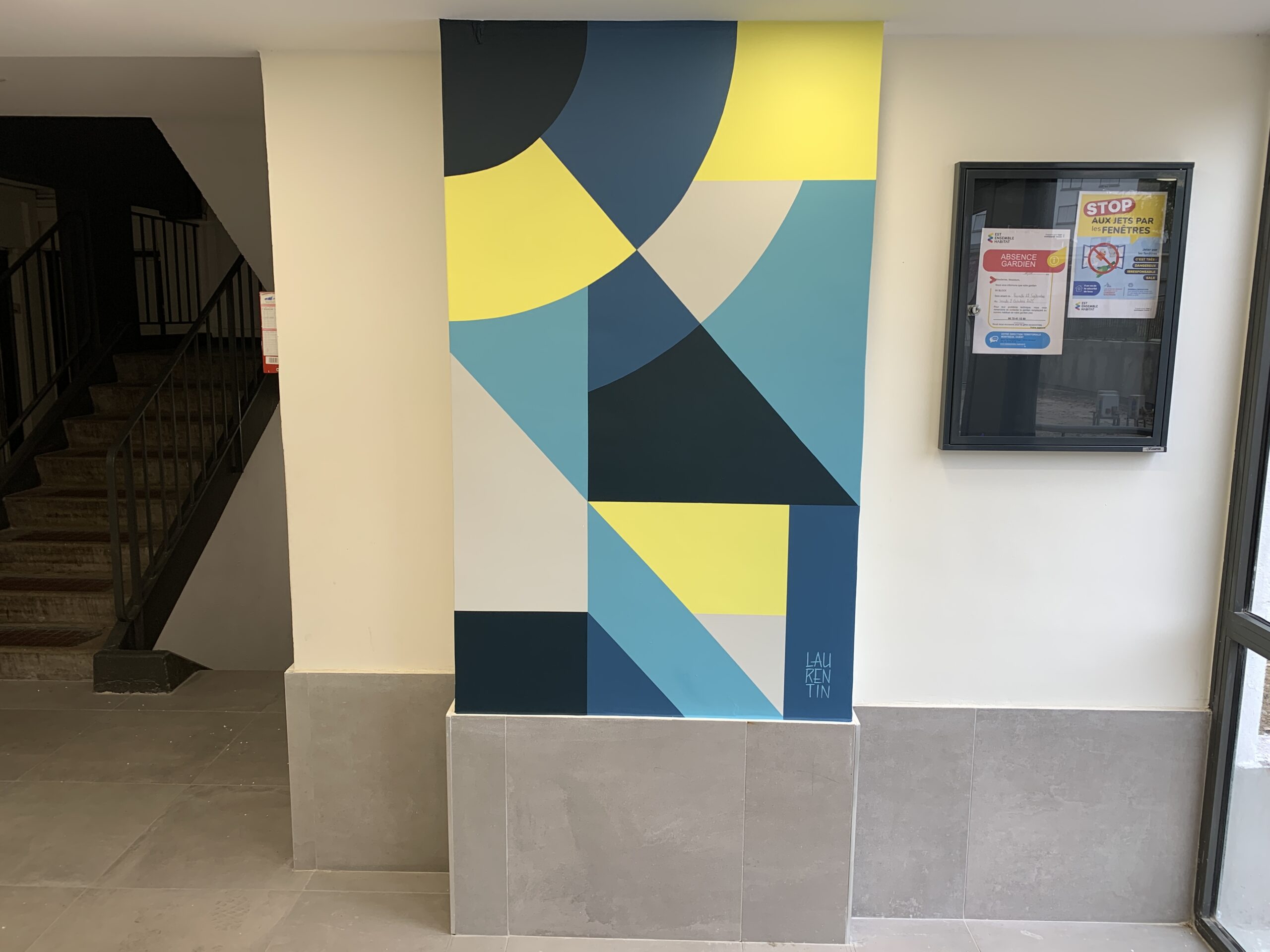 L’artiste Clément Laurentin a signé une série de 10 muraux graphiques, chacun pensé comme une œuvre à part entière. Par un travail sur les formes, les lignes et les couleurs, chaque hall se voit doté d’une identité visuelle propre, permettant de différencier les entrées tout en instaurant une cohérence d’ensemble à l’échelle du projet.