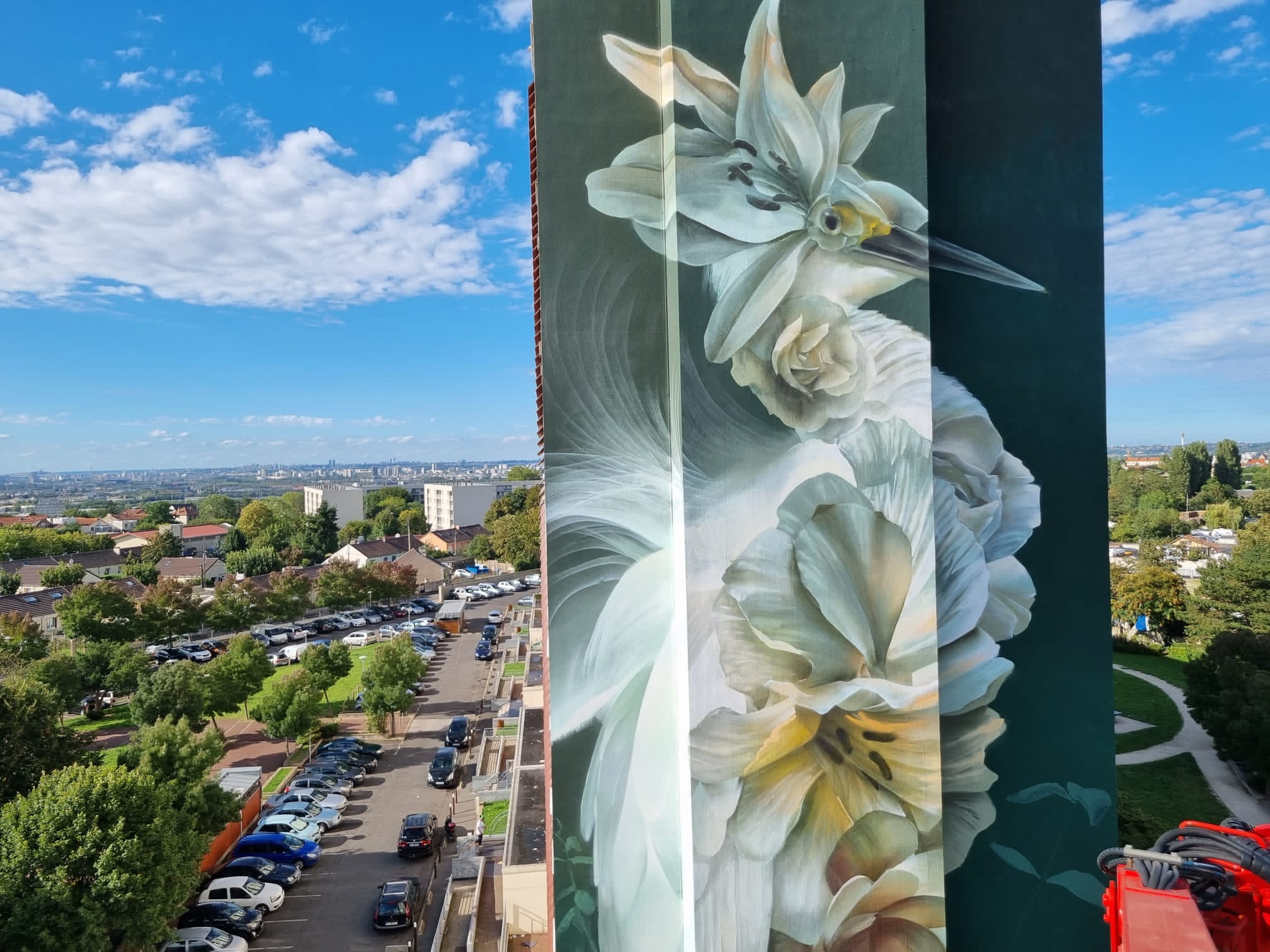 Cette réalisation s’inscrit dans le cadre de Déambul’Art 2023, un événement organisé par l’Agence GLV pour le bailleur social ICF Habitat La Sablière. Pensée comme une œuvre emblématique du parcours artistique, la fresque participe à la valorisation du territoire et à la création d’un dialogue sensible entre nature, art et habitat.