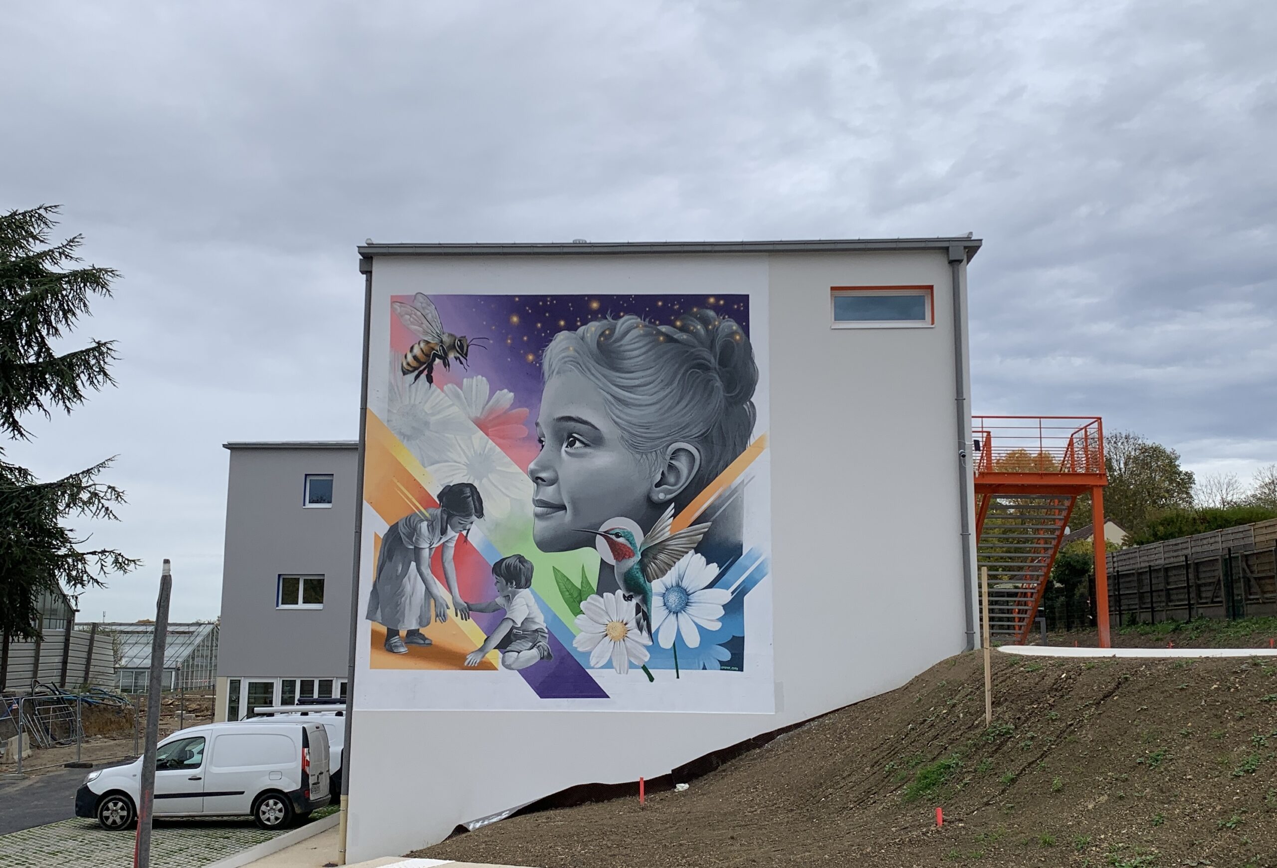Pour incarner cette vision c’est l’artiste Mister Copy qui a été sollicité. Pensée comme un trait d’union entre les enfants accueillis au sein de l’IME et le regard extérieur, l’œuvre déploie un langage visuel accessible, joyeux et profondément humain.