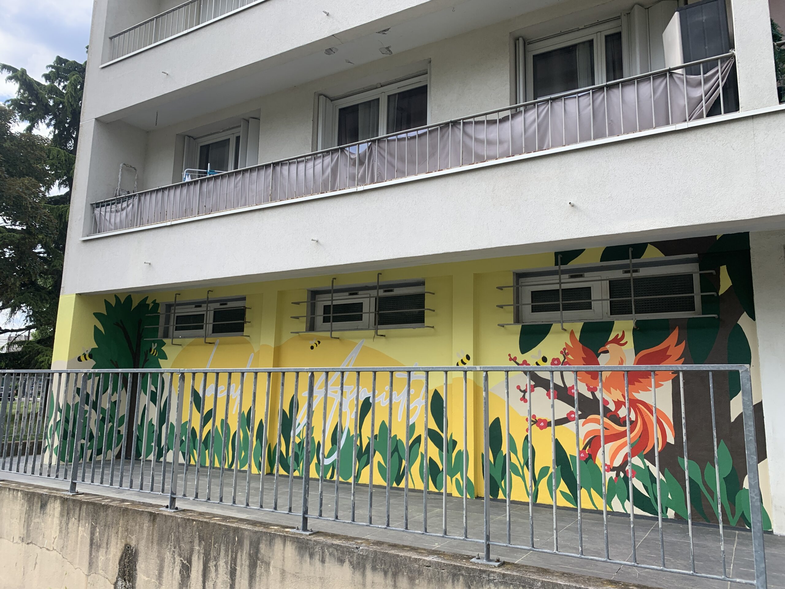 Le projet a également pris une dimension participative, les enfants du quartier ayant souhaité s’impliquer activement dans la réalisation de l’œuvre. Une contribution spontanée qui renforce encore davantage le lien entre la fresque, le lieu et ses usagers.